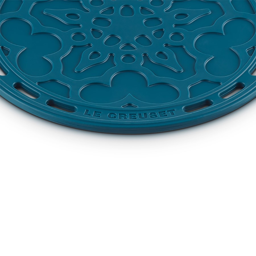 The Le Creuset French Trivet, made from durable silicone, combines practicality with style. Its heat-resistant design protects countertops and surfaces from hot pots and pans, while its non-slip surface ensures stability. The trivet features a classic, elegant pattern that complements any kitchen décor. Flexible yet sturdy, it can handle high temperatures and is easy to clean. The lightweight, non-absorbent silicone material makes it ideal for everyday use and adds a touch of sophistication to your dining setup. This trivet is both functional and stylish, perfect for any kitchen or table setting.