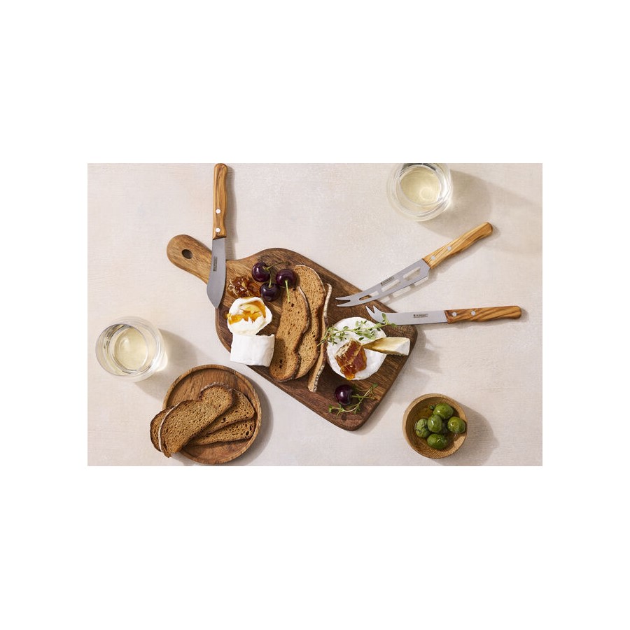 Elegant Design: | Olive wood handles provide a sophisticated look and comfortable grip |