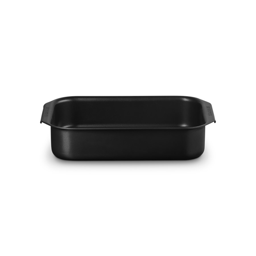 The Le Creuset Rectangular Roasting Tin 33 x 26 cm is a versatile and durable addition to any kitchen, ideal for roasting meats, vegetables, and preparing baked dishes. Crafted from heavy-gauge carbon steel, it ensures even heat distribution for consistent cooking results. The toughened non-stick coating allows for easy food release and effortless cleaning. Its deep side walls minimize splashes, and the wide rim with silicone inserts offers a secure grip when transferring from oven to table. Oven safe up to 240°C, this roasting tin combines functionality with Le Creuset's renowned quality.