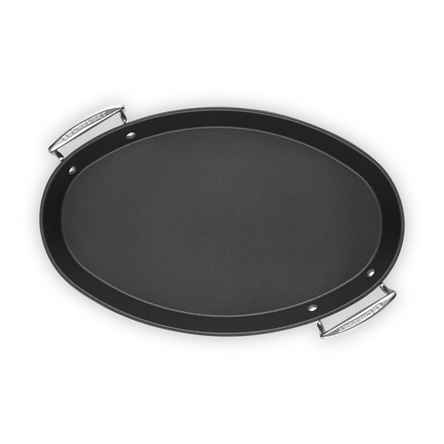 The Le Creuset Toughened Non-Stick Oval Fish Pan is designed for perfectly cooking delicate fish and seafood. Its oval shape accommodates whole fish and fillets, while the durable non-stick coating ensures easy food release and effortless cleanup. The pan features a wide, flat base for even heat distribution and includes ergonomic handles for a comfortable, secure grip. Suitable for all stovetops, including induction, and oven safe, this versatile fish pan is also dishwasher safe, combining functionality with style for a seamless cooking experience.