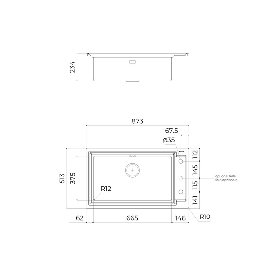 Stainless Steel 87.3 x 51.3 cm Equipment 8407 116 - Space Push automatic waste fitting 8100 606 - Black grid 8100 607 - Black grid