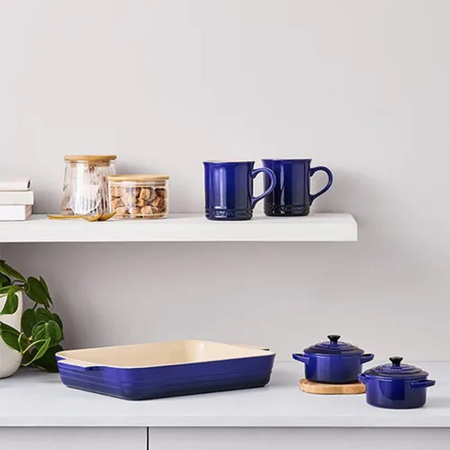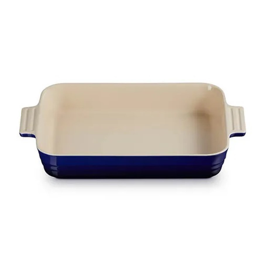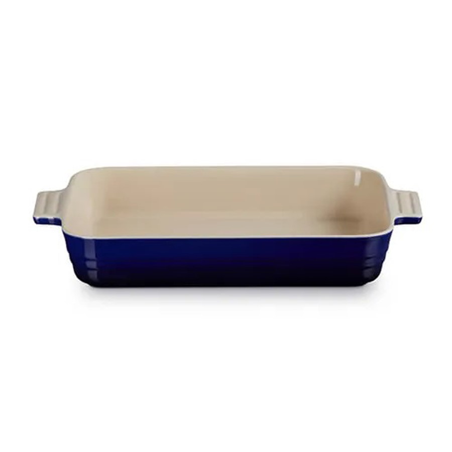 Recognised for its versatility and considered an essential for all kitchens, the Le Creuset Indigo Stoneware Large 32cm Heritage Rectangular Dish is perfect for everyday cooking. This Le Creuset stoneware rectangular dish is durable and designed with easy-grip scalloped handles. This stoneware dish boasts a generous cooking capacity (4L) and is perfect for marinating, roasting, baking or serving.