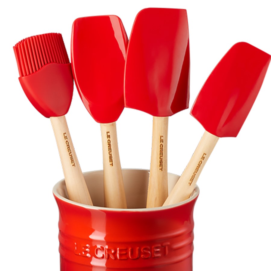 The Le Creuset Jug with 4 Utensils is a practical and stylish set, perfect for organizing essential kitchen tools. The durable stoneware jug features a smooth, non-porous enamel finish that resists staining and cracking, while offering a vibrant pop of color to your kitchen. The set includes four high-quality silicone utensils—typically a spatula, spoon, and whisk—designed to withstand high temperatures and provide flexibility in cooking. The jug serves as a sturdy storage solution, keeping your countertop tidy, and both the utensils and jug are dishwasher safe for easy cleaning.