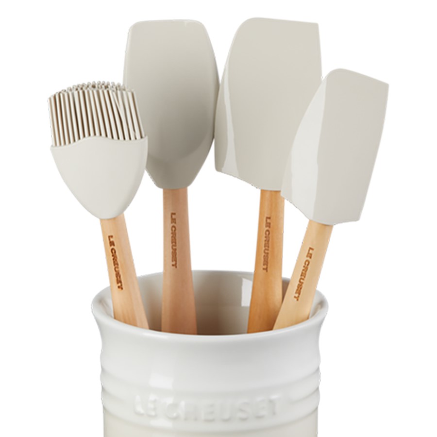 The Le Creuset Jug with 4 Utensils is a practical and stylish set, perfect for organizing essential kitchen tools. The durable stoneware jug features a smooth, non-porous enamel finish that resists staining and cracking, while offering a vibrant pop of color to your kitchen. The set includes four high-quality silicone utensils—typically a spatula, spoon, and whisk—designed to withstand high temperatures and provide flexibility in cooking. The jug serves as a sturdy storage solution, keeping your countertop tidy, and both the utensils and jug are dishwasher safe for easy cleaning.