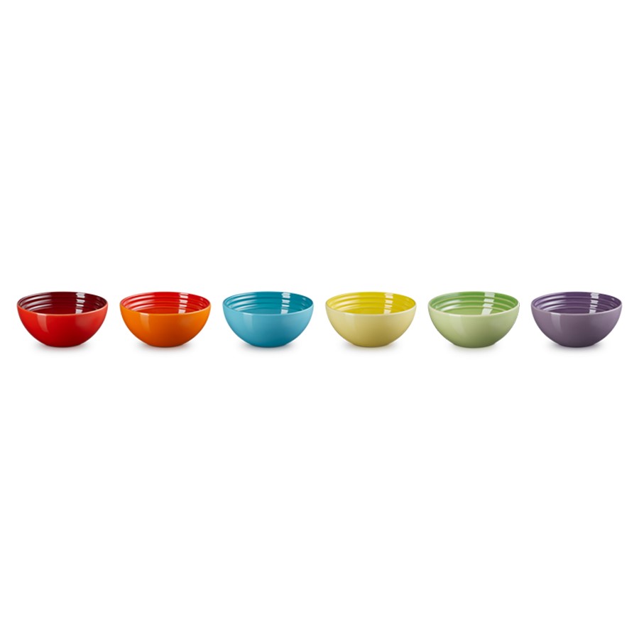 The Le Creuset Stoneware Rainbow Set of 6 Dessert Bowls brings a vibrant splash of color to your table. Each bowl in this set features a different iconic Le Creuset hue, perfect for serving desserts, snacks, or small portions. Made from durable stoneware, these bowls are resistant to chipping, cracking, and staining, while their glossy enamel finish ensures long-lasting shine. The stoneware retains both heat and cold, making them ideal for a variety of dishes. Dishwasher, microwave, and oven safe, this set combines functionality with a playful, colorful design.