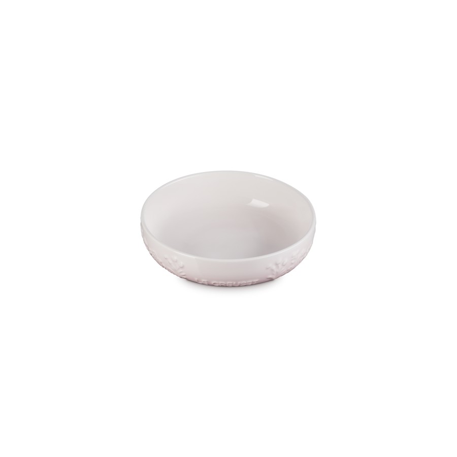 Elevate your dining experience with the Le Creuset Stoneware Jardin Sphere Bowl in Shell Pink. This 18cm bowl features a delicate floral relief pattern inspired by spring blooms, adding a touch of elegance to any table setting. Crafted from premium stoneware, it ensures exceptional durability and even heat distribution, keeping your dishes warmer for longer