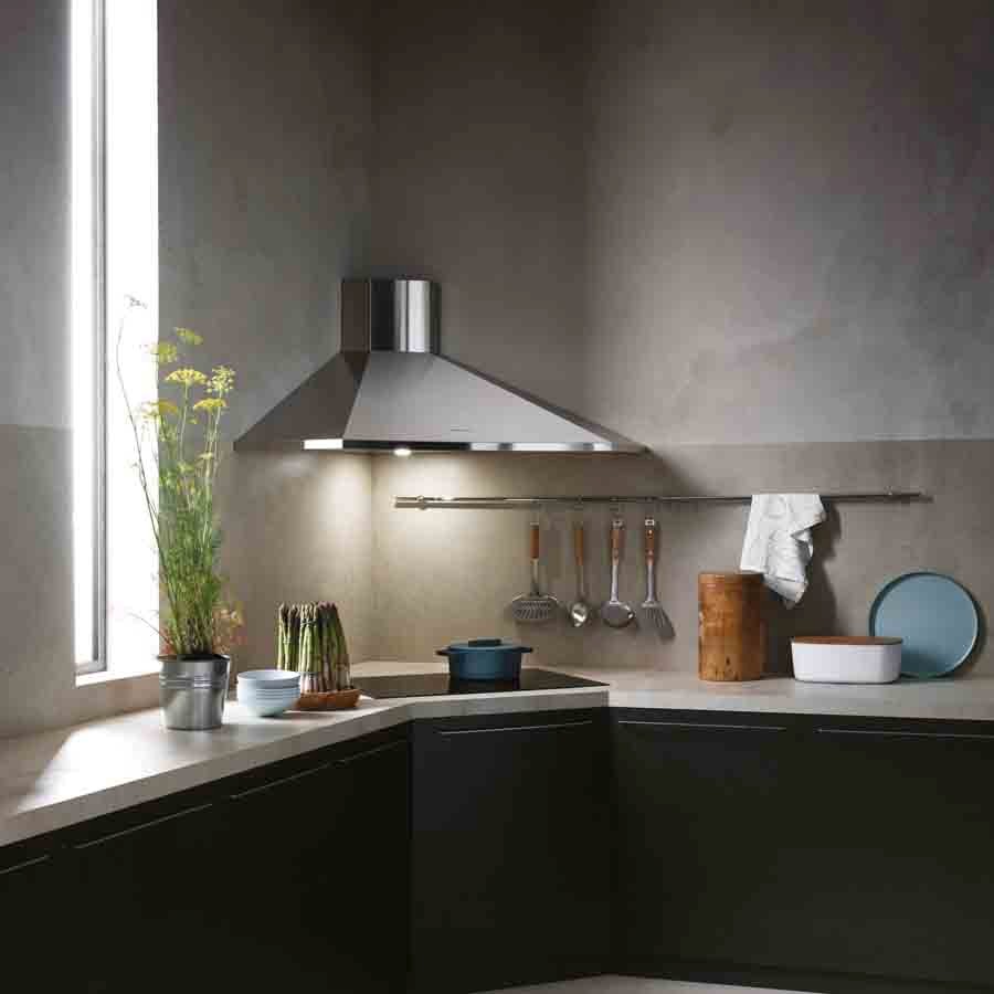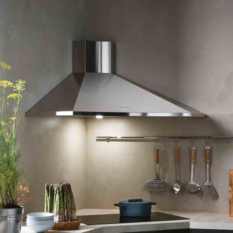 Elios by Falmec is a corner hood, made entirely of stainless steel, that easily matches any living environment. In the version proposed here, the hood is equipped with an 800 m3/h motor and dynamic and dimmable LED lighting.