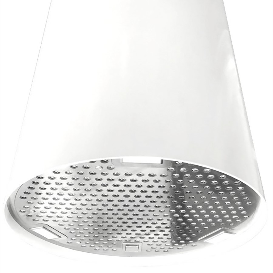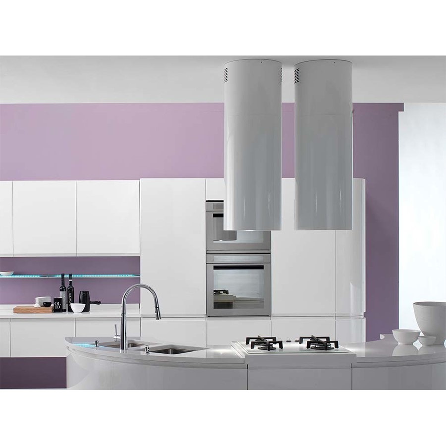 The Falmec Polar Island Hood combines minimalist design with high-performance functionality, making it an elegant addition to any modern kitchen. Crafted from glossy white painted steel, its sleek cylindrical shape complements contemporary aesthetics. Equipped with a powerful 800 m³/h motor, it efficiently removes cooking odors and vapors, while perimeter suction and washable metallic grease filters ensure optimal air purification. The integrated LED lighting provides clear illumination over your cooking area, enhancing both functionality and ambiance.