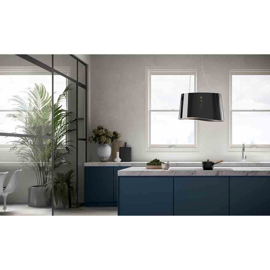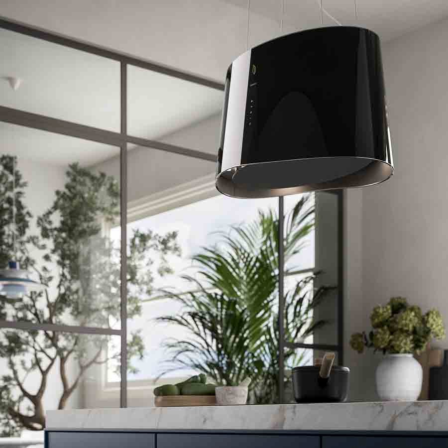 Mare by Falmec is a hood with a harmonious and elegant design that matches any furnishing context! Characterized by the use of the "E.ION SYSTEM" technology, the hood does not require external pipes and emissions: to install it, just hang it on the ceiling!
