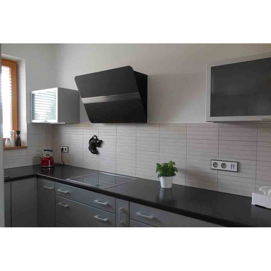 Equipped with a powerful 800 m³/h extraction motor and finished in elegant Black tempered glass with a stainless central band, the Falmec Flipper 55 cm wall hood combines modern design with superior performance