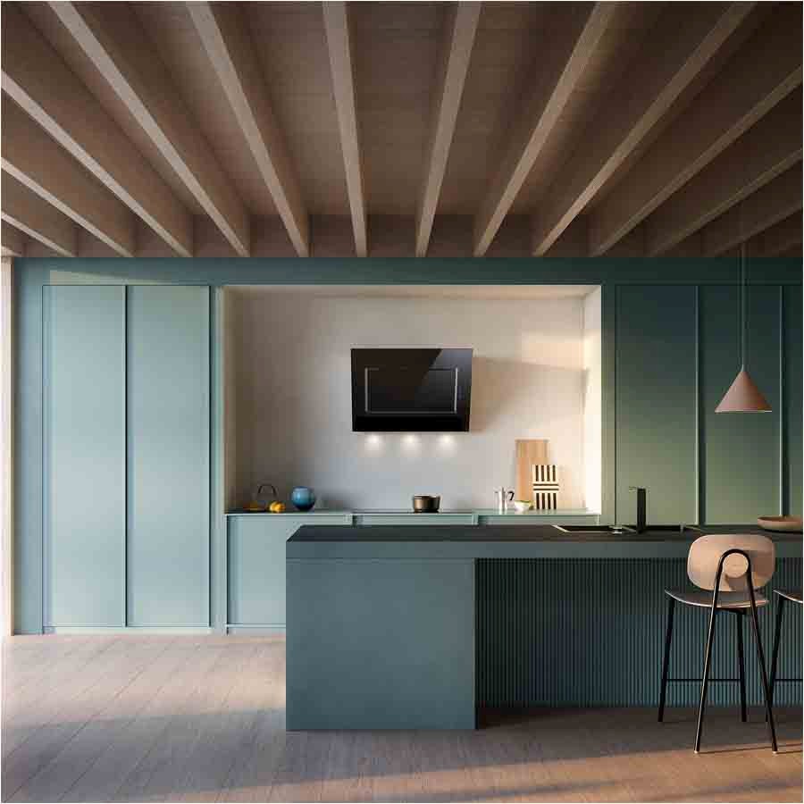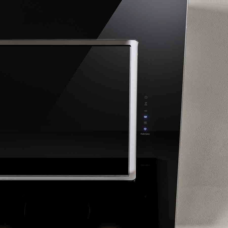 The Falmec Quasar 60 cm wall hood delivers sleek modern design and high-tech functionality in one bold package. Its wide, inclined black tempered glass front panel paired with a stainless steel frame (AISI 304 scotch brite finish) adds a refined visual statement to contemporary kitchens, while its powerful 800 m³/h motor with perimeter suction ensures efficient grease and odor extraction without visual distraction