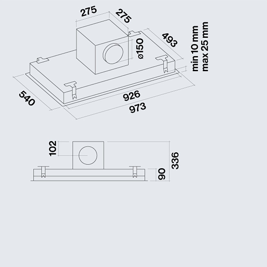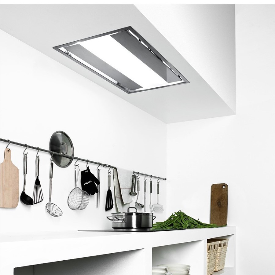 The Falmec Nuvola Ceiling 90 cm hood is a sophisticated and discreet ventilation solution, ideal for modern kitchens. Designed for ceiling installation, it blends seamlessly into the space while providing powerful performance. Made from premium stainless steel (Inox), it offers durability and a sleek aesthetic. The integrated LED lighting ensures optimal illumination of the cooking area, enhancing functionality and style. Its advanced extraction system effectively removes cooking odors, smoke, and grease, ensuring a fresh kitchen environment. This hood is a perfect combination of innovation, elegance, and practicality.
