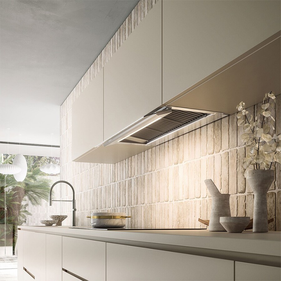 The Falmec Virgola No-Drop Touch built-in hood delivers exceptional extraction while remaining discreetly integrated into your kitchen cabinetry. Its signature anti-condensation No-Drop system captures and channels cooking vapors into a removable collector, preventing drips and ensuring a clean, dry environment. A rotating smoked-glass canopy reveals intuitive touch controls and dynamic dimmable LED lighting (2700–5600 K), while its powerful 800 m³/h motor and optional Carbon.Zeo filter keep air fresh and odor-free. Available in 60 cm, 75 cm, 90 cm (and up to 120 cm), with stainless steel or matte black finish, Virgola No-Drop Touch merges elegant form with practical innovation for modern kitchens.