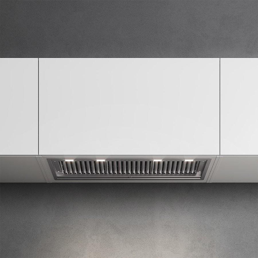 The built-in unit No-Drop 90 features a specialized "No-Drop" filter that prevents condensation buildup, a common issue with induction hobs. It is equipped with an 800 m³/h motor and dynamic LED lighting with adjustable intensity for optimal performance and customized lighting in your kitchen.