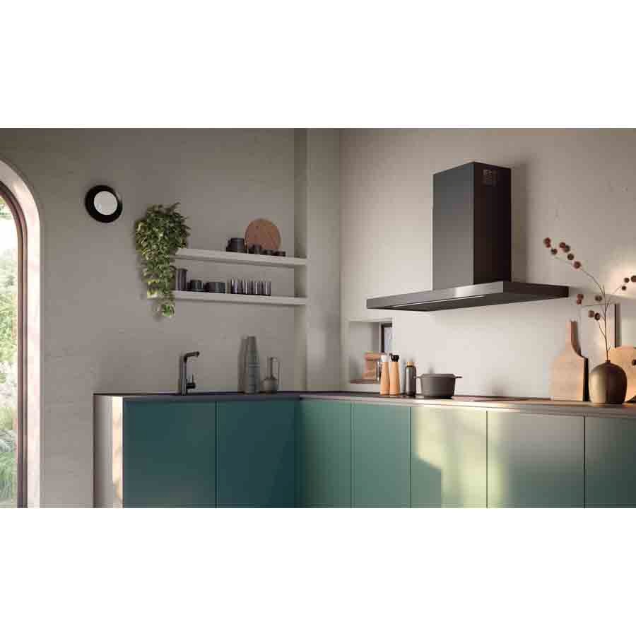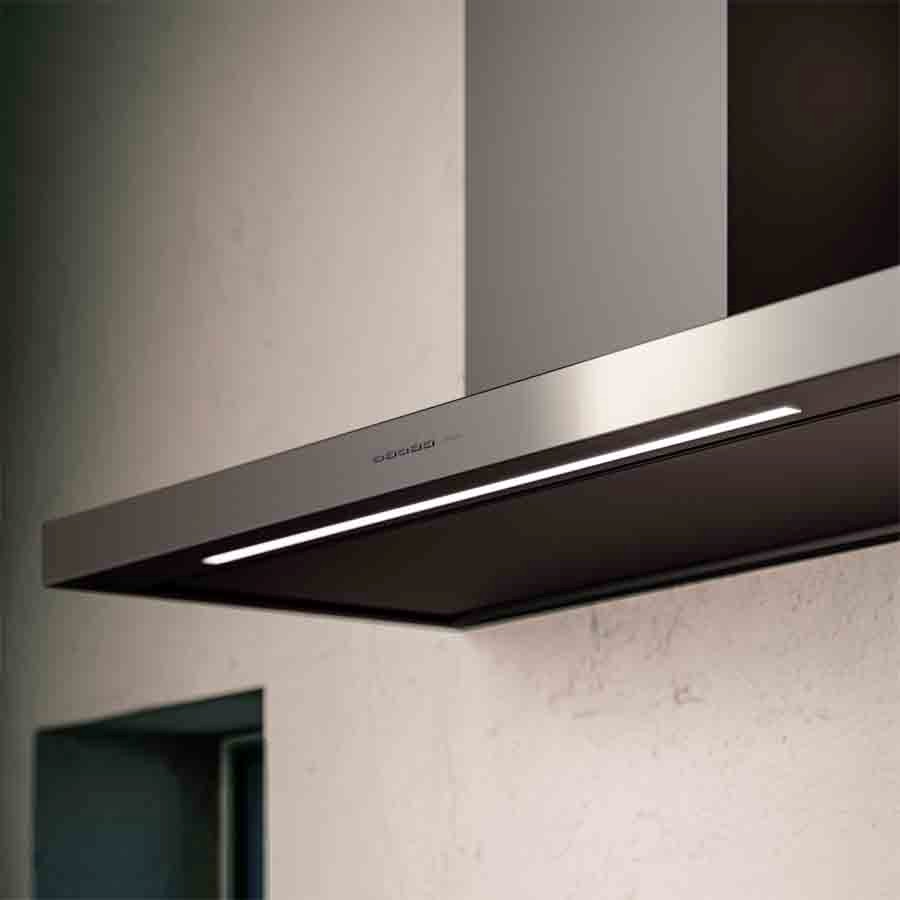 Crafted from Scotch Brite AISI 304 stainless steel and finished in sleek Inox (or optional matte black paint), the Falmec Plane Plus NRS 90 cm wall hood combines minimalist elegance with whisper quiet power. Equipped with Falmec’s patented NRS® Noise Reduction System and perimeter suction, its 800 m³/h motor delivers maximum extraction performance while keeping noise remarkably low (as little as 53 -57 dB). Dynamic, dimmable LED lighting (2 700-5 600 K) enhances ambiance and task lighting, and intuitive electronic controls keep operation simple and stylish. With easily washable metal grease filters, optional regenerable Carbon Zeo recirculation, energy class A efficiency, and Falmec’s smart Dialogue System for seamless hob to hood integration, this wall-mounted hood delivers professional-grade performance wrapped in contemporary Italian design ready to elevate your kitchen experience