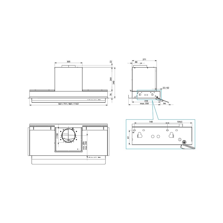 The Falmec Virgola Touch NRS built-in hood offers whisper-quiet yet powerful extraction with its 800 m³/h motor and advanced Noise Reduction System. Its sleek stainless-steel body stays hidden inside a cabinet until the smoked tempered-glass flap is rotated down, revealing touch controls and tone-adjustable LED lighting. Designed for convenience, it features a removable metal grease filter and optional regenerable Carbon.Zeo filtration for fresh, low-maintenance operation. Perfect for modern kitchens that demand both elegance and functionality.