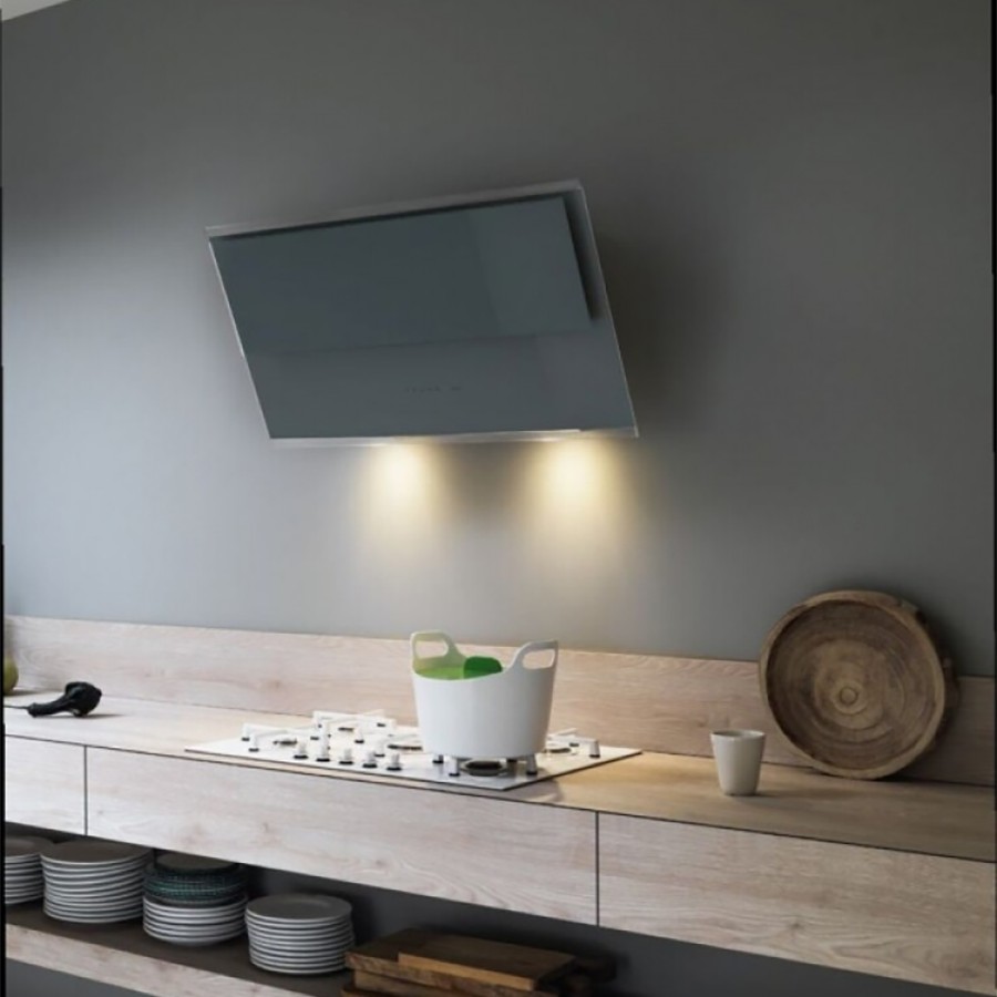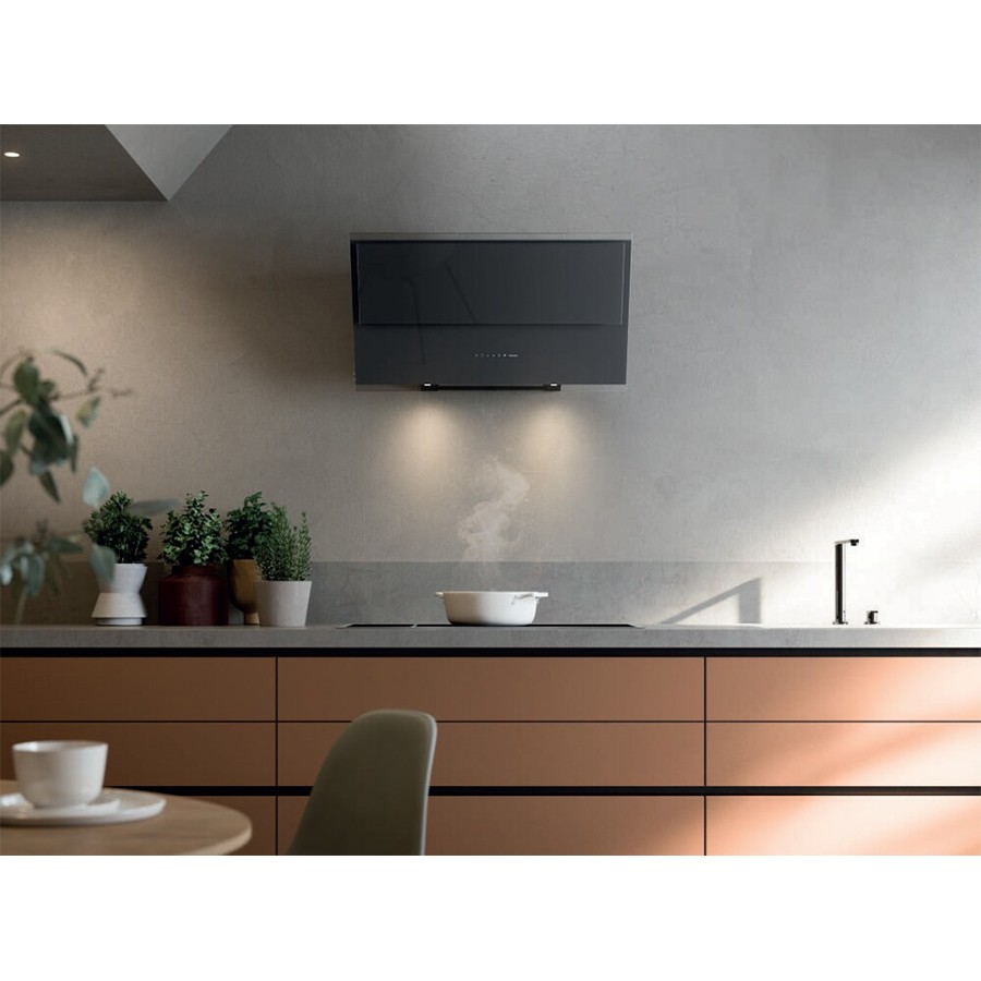 The Falmec Verso 85 cm wall-mounted hood in grey combines striking design with efficient performance. Dual suction zones, powered by an 800 m³/h motor, ensure effective fume extraction from both front and underside. Touch controls, dimmable LED lighting (2700–5600 K), and compatibility with Falmec’s Dialogue System offer smart functionality, while washable filters and optional Carbon.Zeo or charcoal filtration keep maintenance simple.