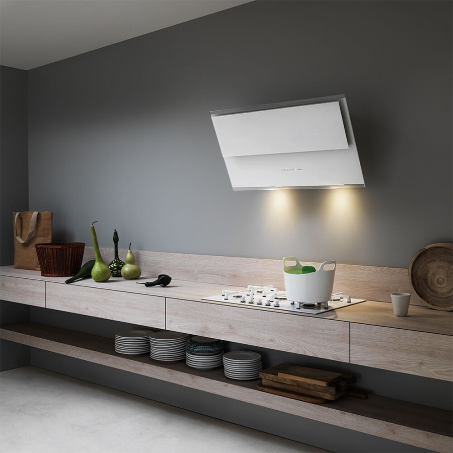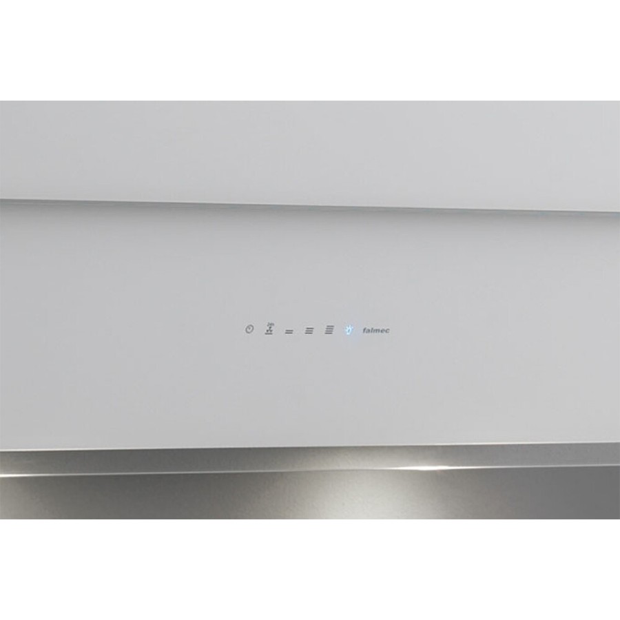 The Falmec Verso 85 cm wall-mounted hood in white glass combines striking design with efficient performance. Dual suction zones, powered by an 800 m³/h motor, ensure effective fume extraction from both front and underside. Touch controls, dimmable LED lighting (2700–5600 K), and compatibility with Falmec’s Dialogue System offer smart functionality, while washable filters and optional Carbon.Zeo or charcoal filtration keep maintenance simple.