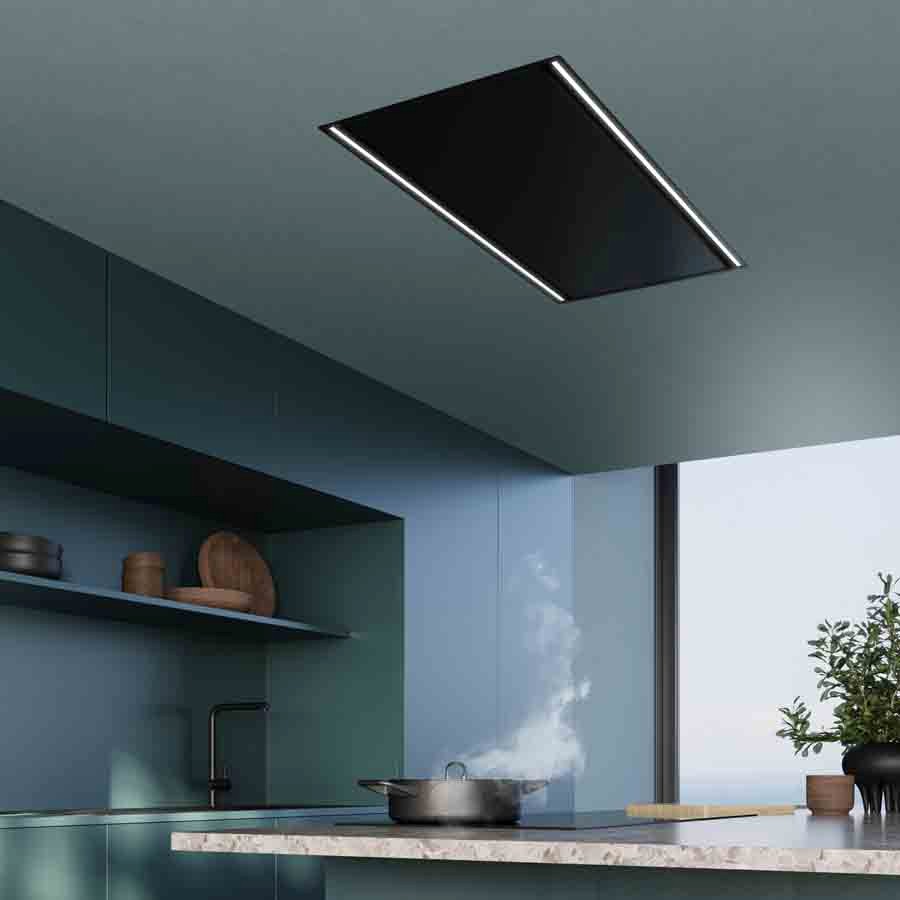 Elevate your kitchen with the Falmec Mirage 100 cm Ceiling Hood – Black(800 m³/h), where sleek design meets cutting-edge function. Discreetly installed flush with your ceiling, Mirage blends into your interior like an architectural light panel, while its powerful brushless motor — offering three speeds plus a Boost mode — ensures fast, efficient extraction.