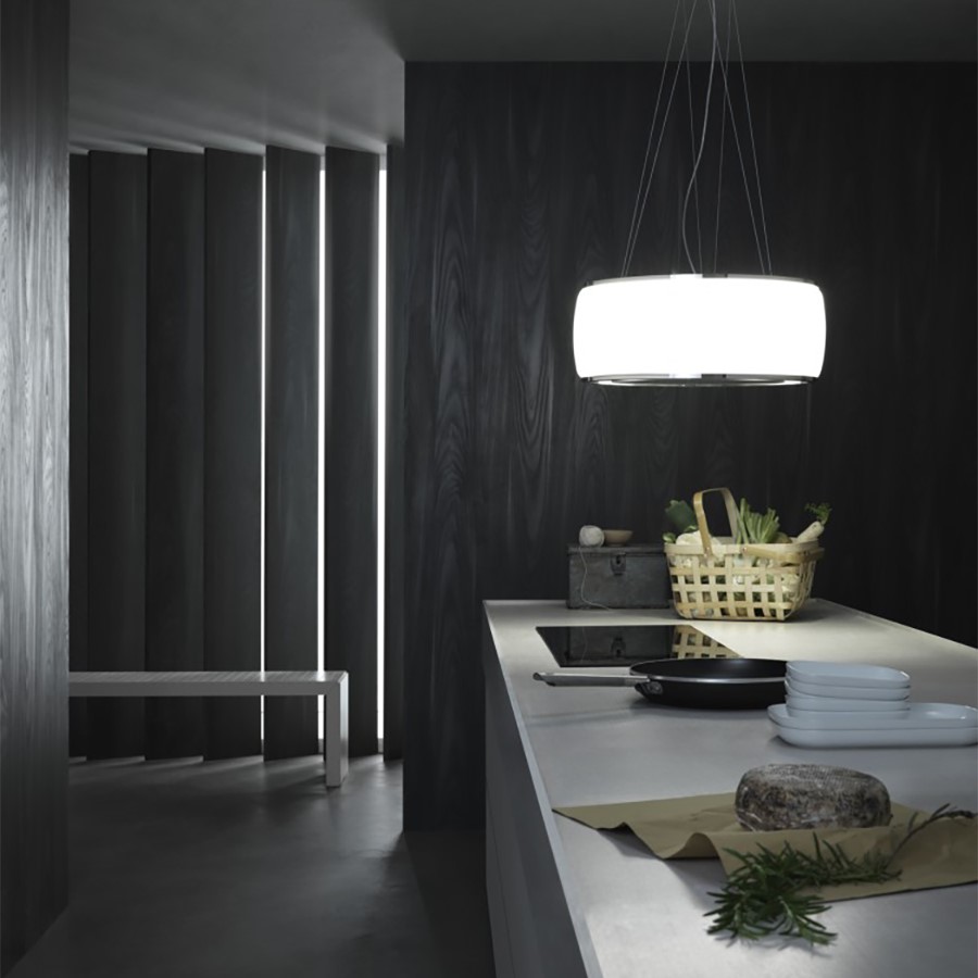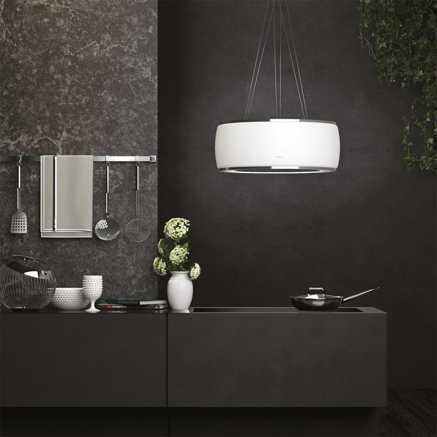 The Falmec Soffio 58 cm Island Hood, part of the Circle.Tech collection, combines modern elegance with innovative functionality. Crafted from mouth-blown Murano glass and finished in white satin, this hood seamlessly integrates suction and filtration within a single body, delivering both exceptional performance and sophisticated design. Featuring a 600 m³/h motor, the Soffio is ideal for maintaining a clean, fresh kitchen environment. With its artistic appeal and cutting-edge Circle.Tech technology, it serves as both a practical appliance and a striking centerpiece for contemporary kitchens.