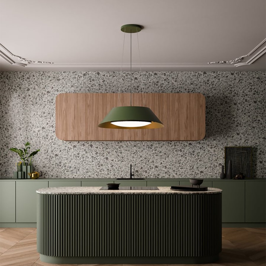 The Falmec Vogue island hood is a stunning fusion of light and extraction, featuring an 88 cm circular stainless-steel body with an inner glass dome that emits adjustable dynamic lighting. Powered by a 600 m³/h brushless motor and equipped with innovative Circle.Tech filtration and Carbon.Zeo regenerable filters, it ensures powerful yet whisper-quiet performance. With four speeds plus Boost, optional remote control, and seamless connectivity to Falmec induction hobs via the Dialogue System, Vogue delivers both functional excellence and sophisticated design for contemporary kitchens.