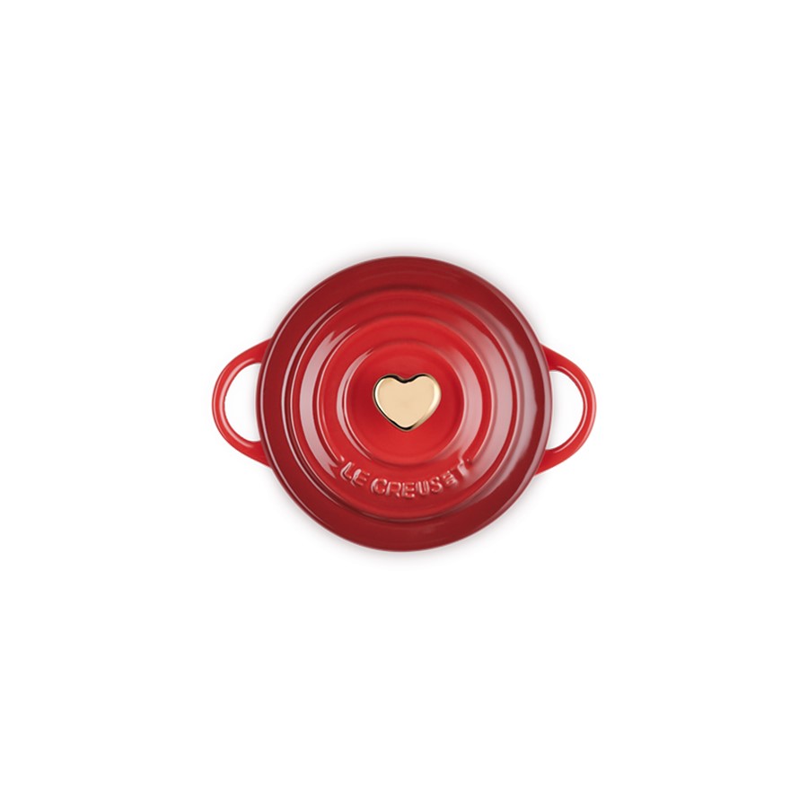 The Le Creuset Mini Cocotte with Gold Heart Knob is a charming and elegant piece, perfect for individual servings or small portions of casseroles, desserts, and side dishes. Made from high-quality stoneware, this mini cocotte ensures excellent heat retention and even cooking. The standout feature is its gold heart-shaped knob, adding a touch of luxury and warmth to your table setting, making it ideal for special occasions. The durable enamel finish resists chipping, cracking, and staining. It's safe for use in the oven, microwave, freezer, and dishwasher, combining both beauty and practicality in one delightful dish.