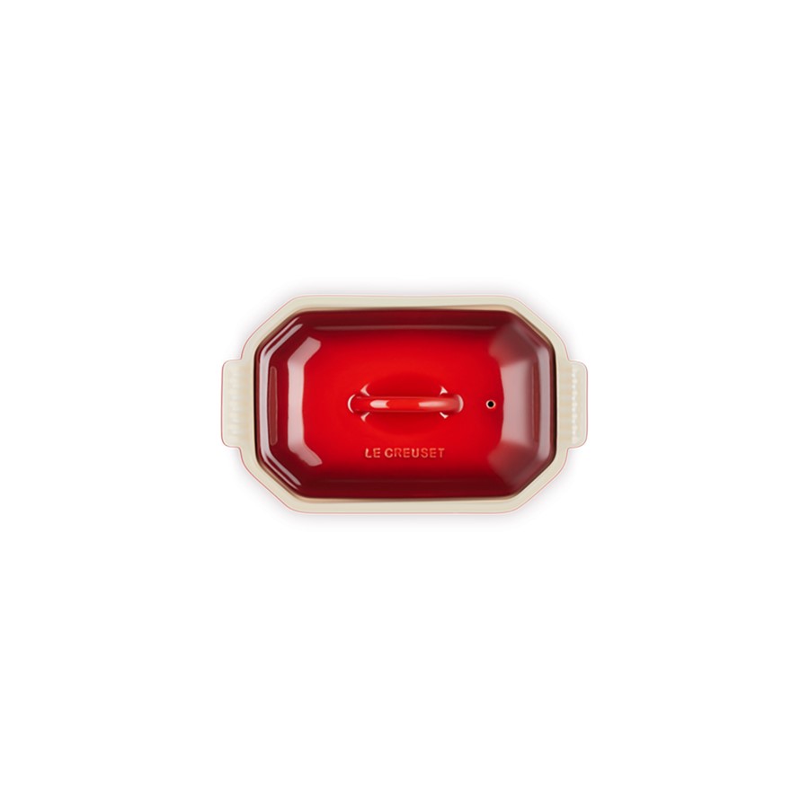 The Le Creuset Stoneware "Foie Gras" Terrine with Press (16 cm, 0.60L) is an elegant and functional piece designed specifically for preparing foie gras, pâtés, and other layered delicacies. Crafted from high-quality stoneware, it ensures even heat distribution for perfect cooking and setting of ingredients. The included press allows for compacting and shaping your dish, resulting in a smooth and professional finish. The durable enamel coating resists chipping, cracking, and staining, while the snug-fitting lid retains moisture and flavor. Safe for the oven, microwave, freezer, and dishwasher, this terrine combines timeless style with practicality, ideal for gourmet cooking.