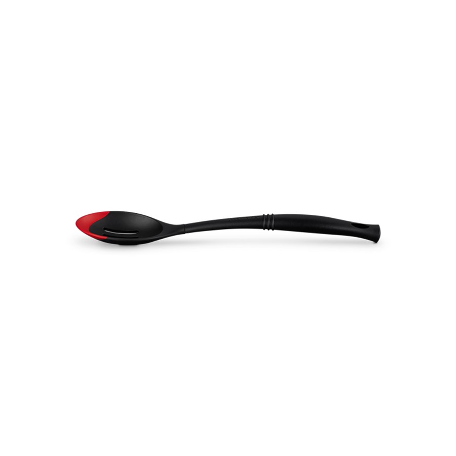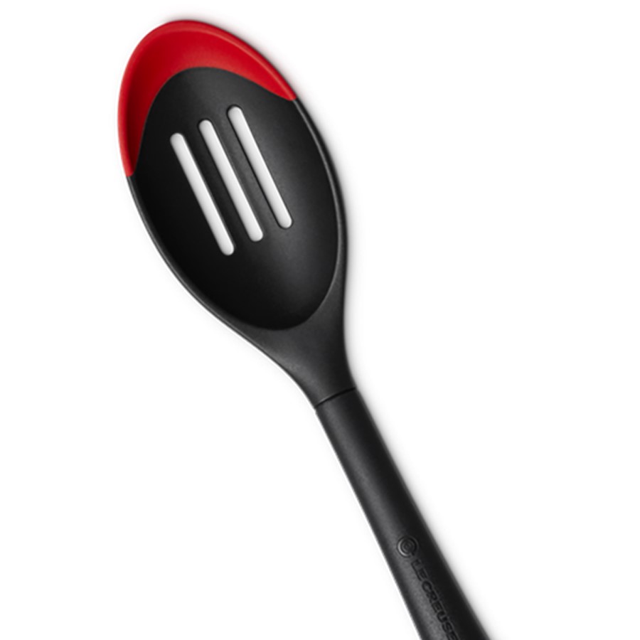 The Le Creuset Edge Slotted Spoon is an essential kitchen tool designed for serving, stirring, and draining food effortlessly. Crafted from high-quality nylon, this spoon features a slotted design that allows excess liquids to drain away, making it perfect for serving pasta, vegetables, or fried foods. The sturdy construction provides durability and flexibility, while the ergonomic handle ensures a comfortable grip during use. Its heat-resistant material is safe for use with non-stick cookware, preventing scratches and damage. Available in vibrant colors, the Edge Slotted Spoon adds a touch of style to your kitchen while offering practical functionality. Dishwasher safe for easy cleaning, it's a must-have for any home cook.