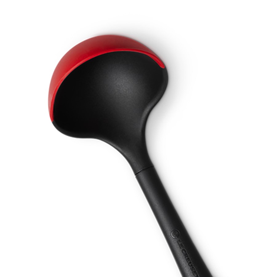 The Le Creuset Edge Ladle Revolution is a beautifully designed kitchen tool perfect for serving soups, stews, and sauces. Crafted from high-quality stainless steel, this ladle features a unique, modern edge that allows for easy pouring and precise serving without spills. The ergonomic handle provides a comfortable grip, ensuring effortless use while cooking or entertaining. Its durable construction is designed to withstand high temperatures, making it suitable for use with hot foods. With a sleek design and stylish finish, the Edge Ladle Revolution adds elegance to your kitchen while providing practical functionality, making it an essential addition to any cookware collection.