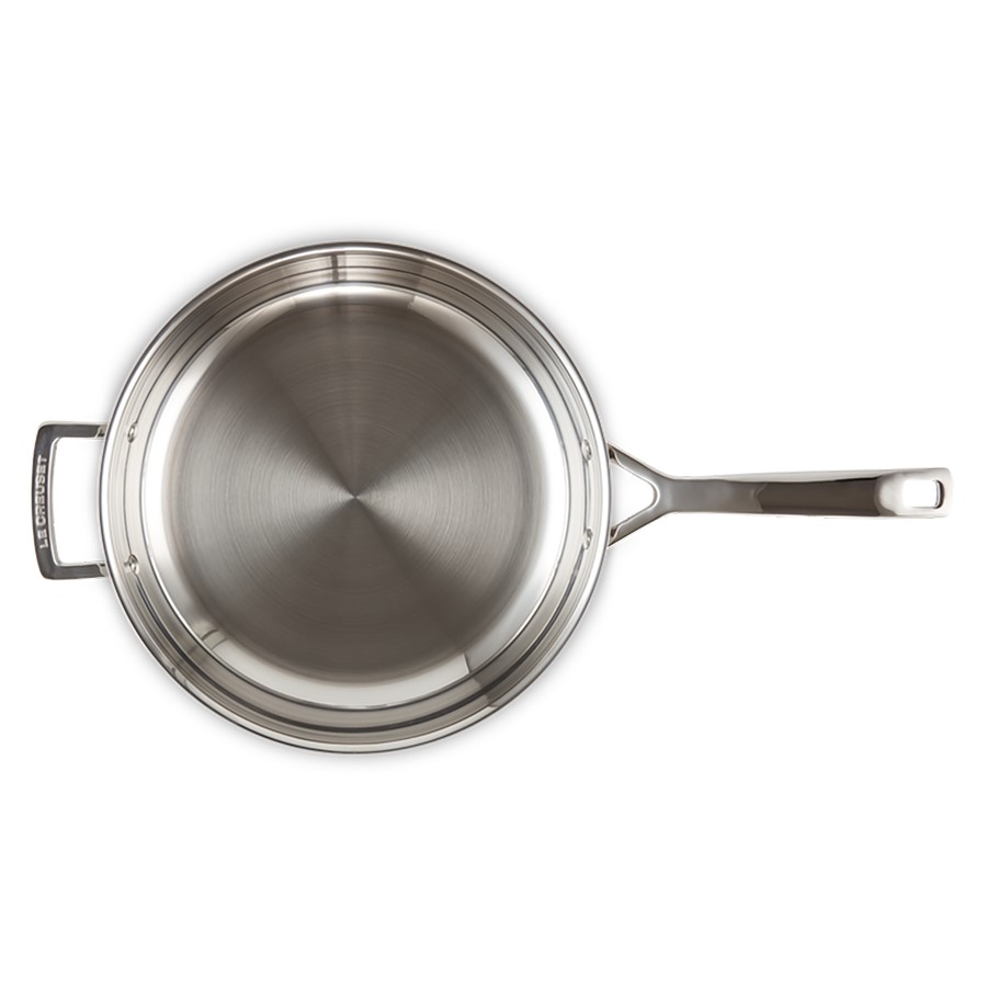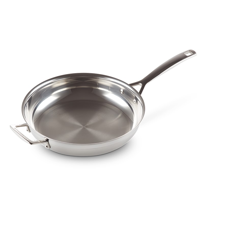 The Le Creuset Stainless Steel Frying Pan is a premium kitchen essential designed for versatility and durability. Crafted from high-quality stainless steel, it provides excellent heat conductivity for even cooking, making it perfect for sautéing, frying, and browning. The sleek design features a polished finish that not only looks elegant but is also resistant to scratching and staining. The ergonomic handle ensures a comfortable grip, while the flared edge allows for easy pouring. Compatible with all cooktops, including induction, this frying pan is dishwasher safe for effortless cleanup, making it an ideal choice for both everyday cooking and special occasions.