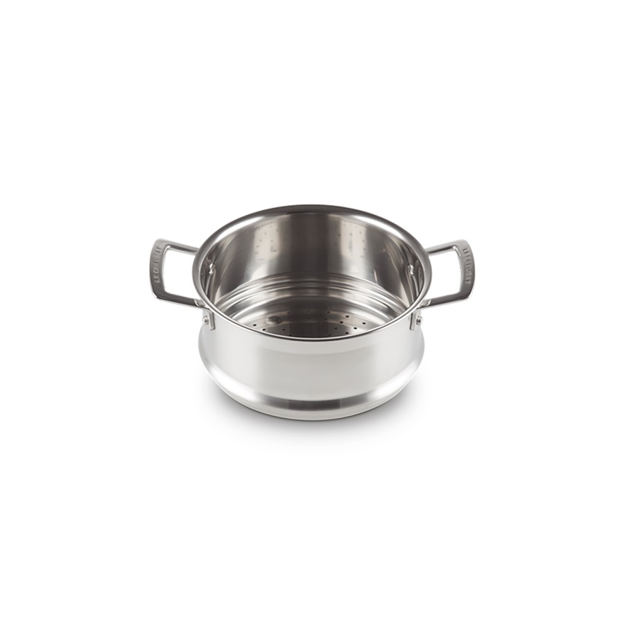 The Le Creuset Stainless Steel Steamer is a versatile kitchen essential designed for healthy cooking. Crafted from high-quality stainless steel, it fits seamlessly over Le Creuset cookware, allowing you to steam vegetables, seafood, and dumplings with ease. The durable construction ensures even heat distribution for perfectly cooked dishes while retaining nutrients and flavors. Its sleek design features a convenient handle for easy lifting and a polished finish that adds elegance to your kitchen. Ideal for those looking to maintain a healthy lifestyle, this steamer is dishwasher safe, making cleanup quick and effortless. Elevate your cooking with this essential tool.