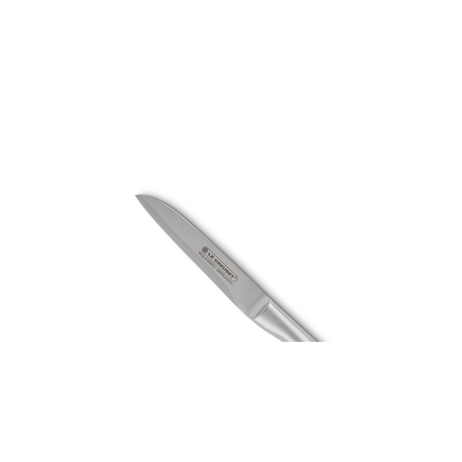 Prepare your favourite vegetables with this handy 9cm knife. The blade is crafted from premium Damascus steel, while a stainless steel handle ensures an ergonomic grip. Perfect for peeling, chopping, mincing and slicing, this knife is an everyday essential.