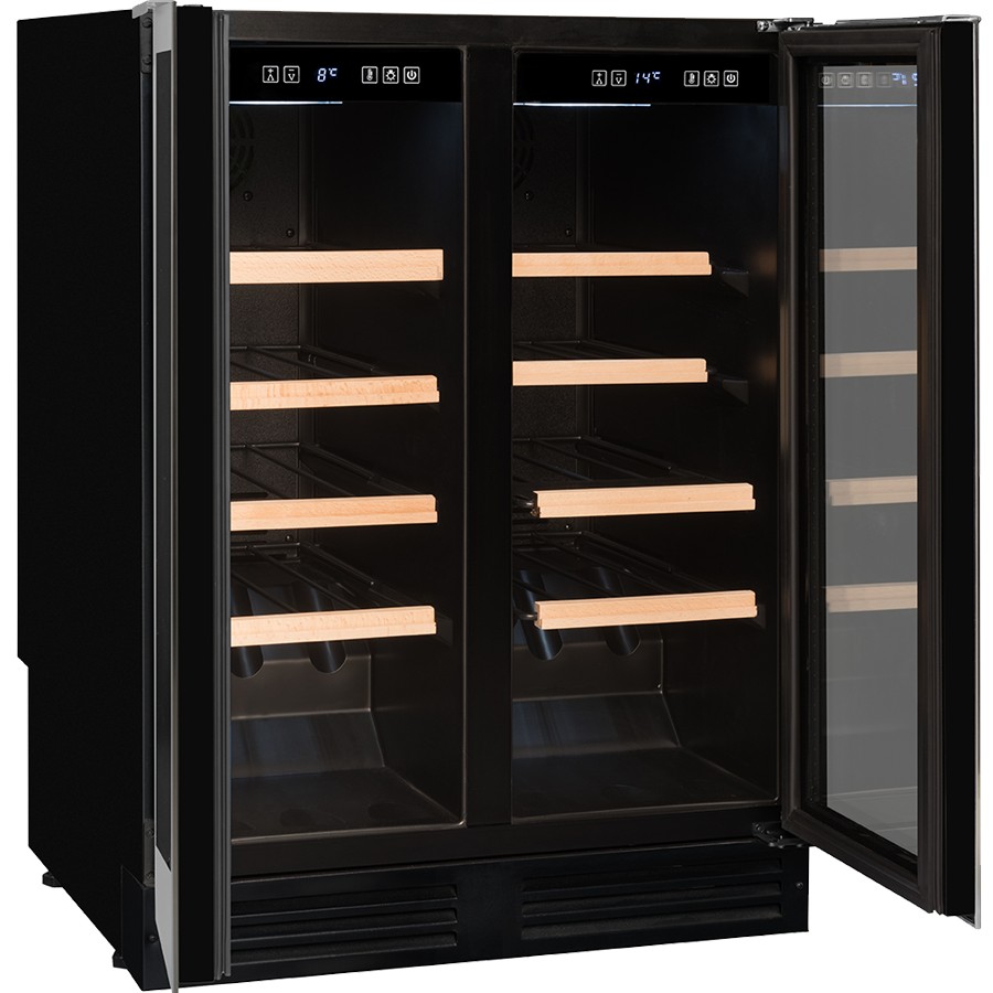 Discover elegance and performance with the AVI60PLATINUM, a self-ventilated wine cellar from the PLATINUM range. Designed for demanding wine enthusiasts, this cellar offers precise temperature control in two distinct zones, accommodating up to 24 bottles.