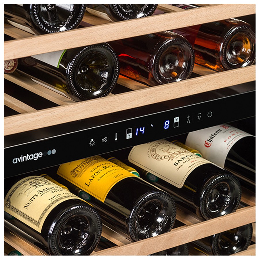 The Avintage AVU51D82 wine cellar is a double zone, under-counter built-in service wine cellar. It can accommodate 44 bottles of wine. Highlight your best bottles in your kitchen with the shelves on telescopic rails!