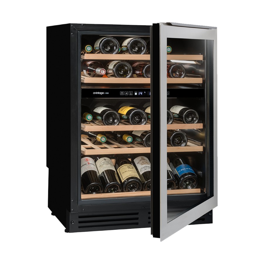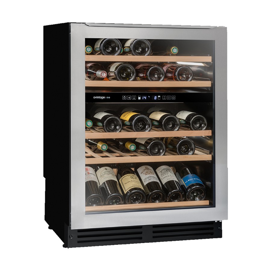 The Avintage AVU54TDZX1 built-under wine cellar offers a sophisticated solution for wine enthusiasts seeking optimal storage conditions. With a capacity of 53 bottles, it features dual temperature zones—5–10°C in the upper zone and 10–20°C in the lower—allowing for precise storage of both red and white wines.