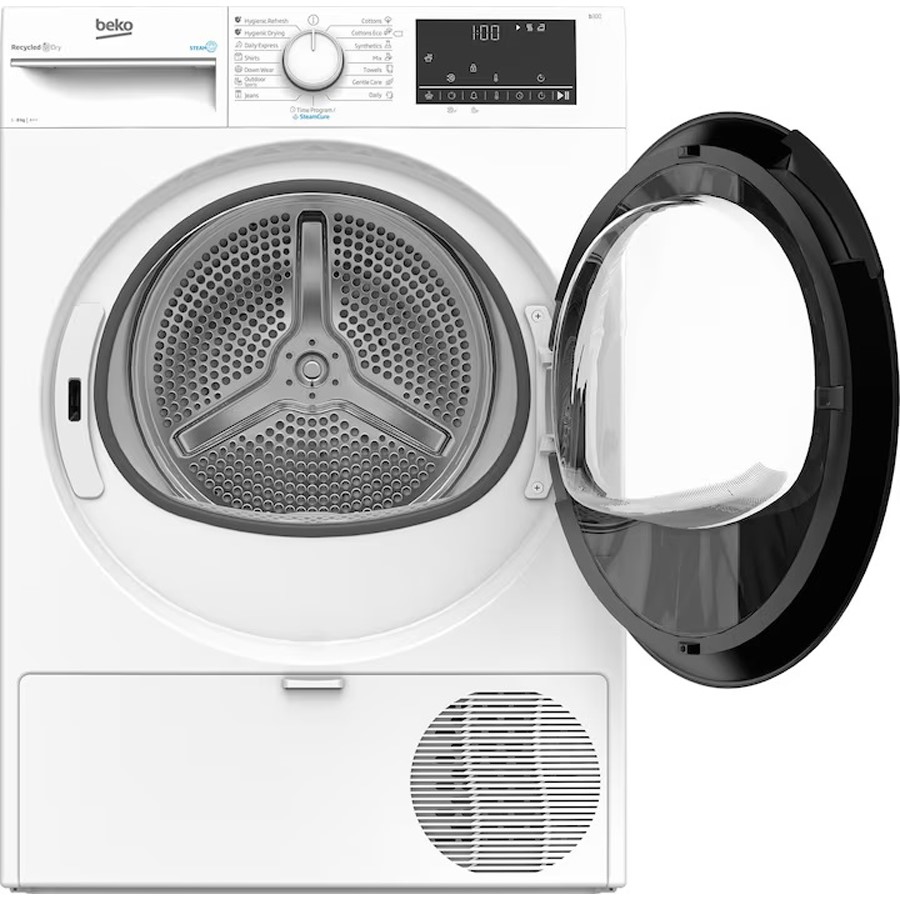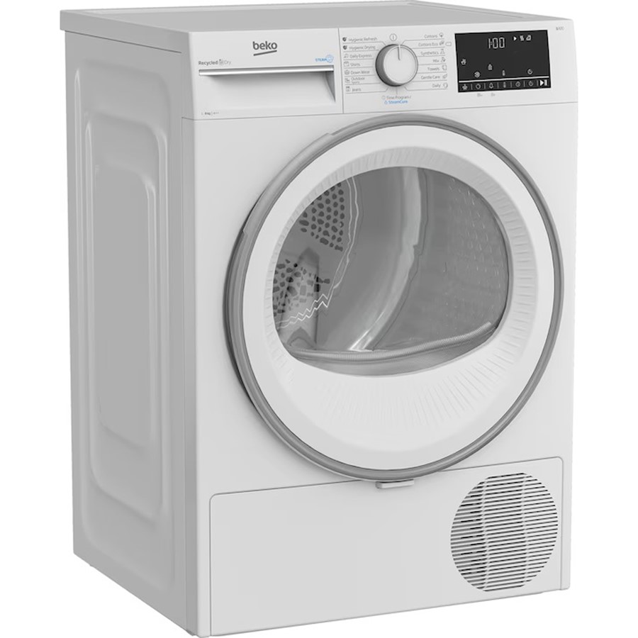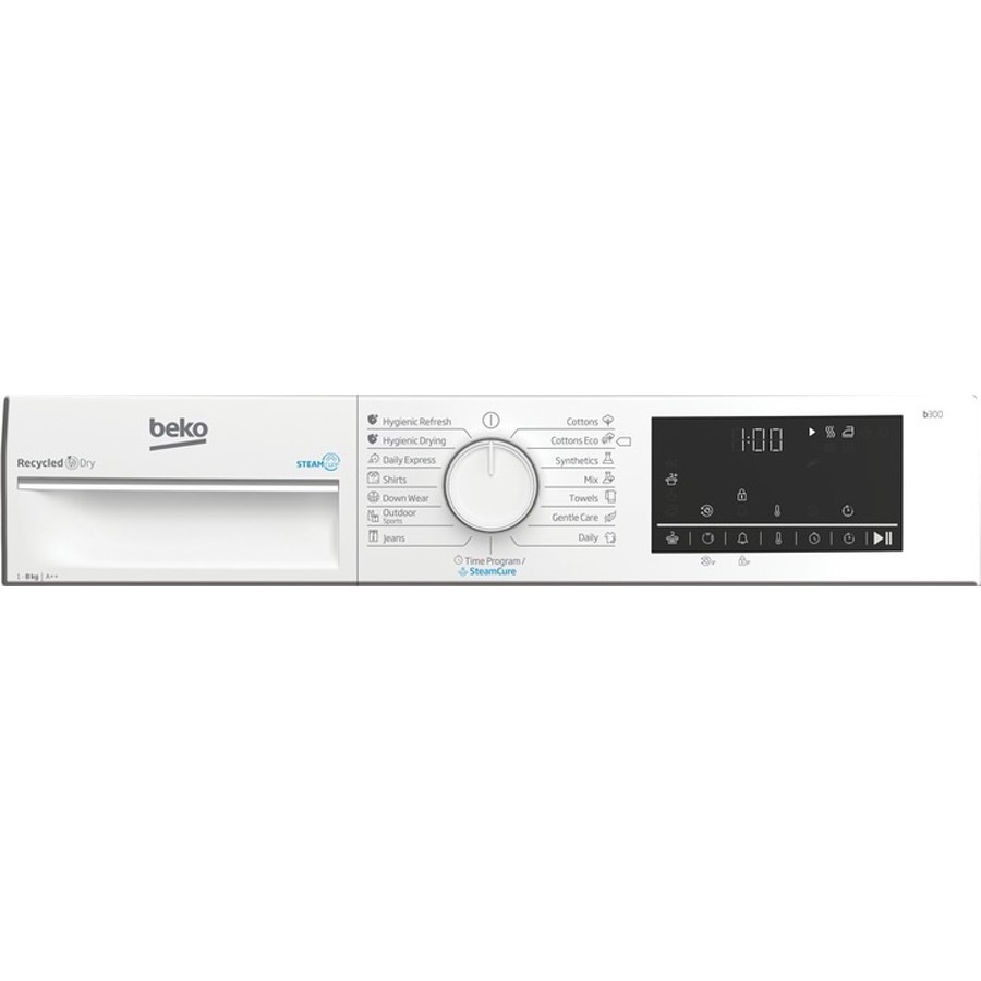 Enhance your laundry routine with the Beko B3T68230 heat pump tumble dryer, offering an 8 kg capacity suitable for medium to large households. The dryer features 15 specialized programs, including Quick 14-minute, GentleCare, and Hygienic Refresh, catering to various fabric types and drying needs. Equipped with a user-friendly digital display, delayed start timer, and child lock for added safety, it also boasts a reversible door design for flexible installation. The stainless steel drum with AquaWave technology ensures efficient and gentle drying, while the interior drum light aids in easy loading and unloading.