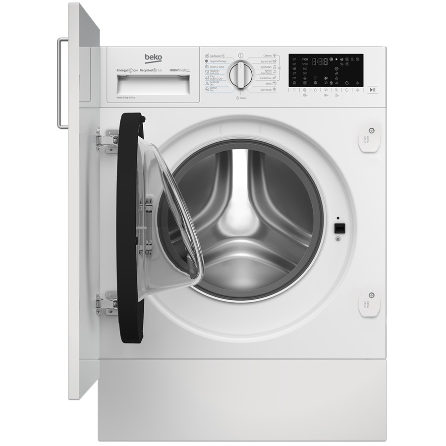 The Beko B5DBT68547W washer-dryer an 8 kg wash and 5 kg dry front-loading appliance powered by a whisper-quiet induction motor. With a high-speed 1,400 rpm spin, it delivers robust cleaning performance. SteamCure and IronFast steam functions reduce wrinkles and make ironing easier, while EnergySpin technology optimises drum motions to dissolve detergent more effectively. Designed for seamless integration, this model features adjustable front and rear feet, a clear time-display, and eco-conscious touches like a polypropylene drum and stainless steel interior. Sleek and practical, it’s the perfect built-in choice for a modern laundry space.