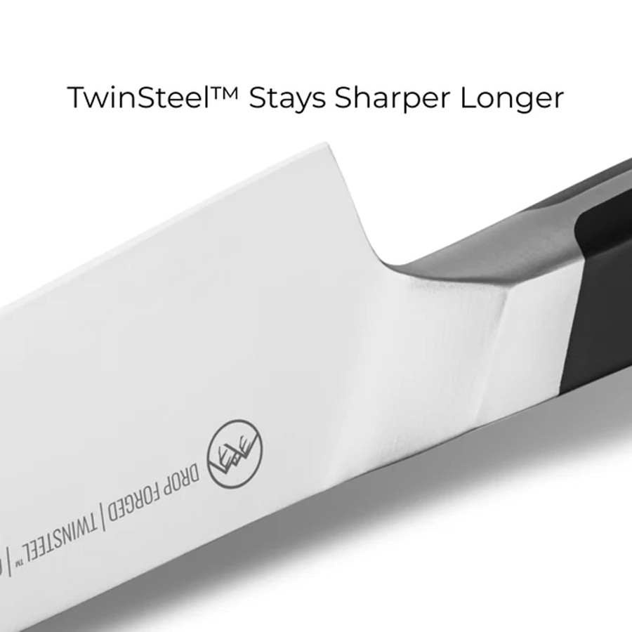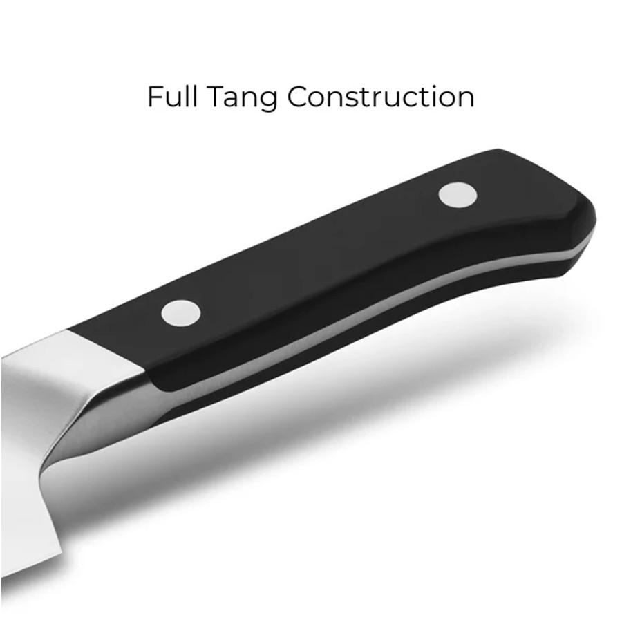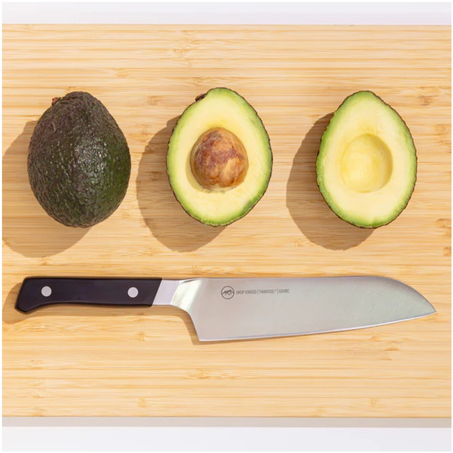 Achieve a pro-like slice. Our Santoku knife features a short blade and straight cutting profile, making tasks like slicing fine fish and vegetables effortless.