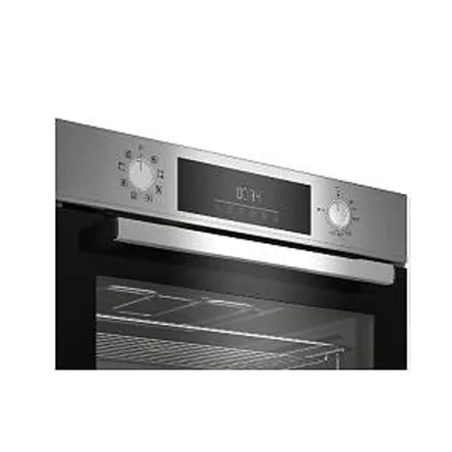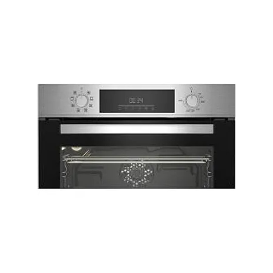 This multifunctional oven is designed to combine modern aesthetics with efficient performance. It features a sleek stainless-steel finish, adding a contemporary touch to any kitchen. This model offers a generous oven capacity, suitable for family meals, and comes equipped with several cooking functions, including fan-assisted cooking, grilling, and defrosting, providing versatility for a range of recipes. The oven also includes easy-to-use controls, energy-efficient operation, and a clear glass door, allowing users to monitor their cooking with ease.