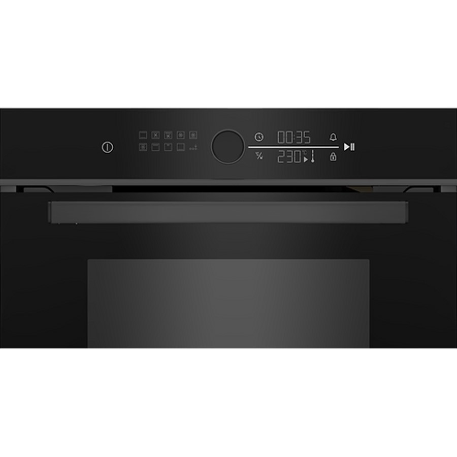 This multifunctional oven is designed to combine modern aesthetics with efficient performance. It features a sleek black finish with dark inox handle, adding a contemporary touch to any kitchen. This model offers a generous oven capacity, suitable for family meals, and comes equipped with several cooking functions, including fan-assisted cooking, grilling, and defrosting, providing versatility for a range of recipes. The oven also includes easy-to-use controls, energy-efficient operation, and a clear glass door, allowing users to monitor their cooking with ease.