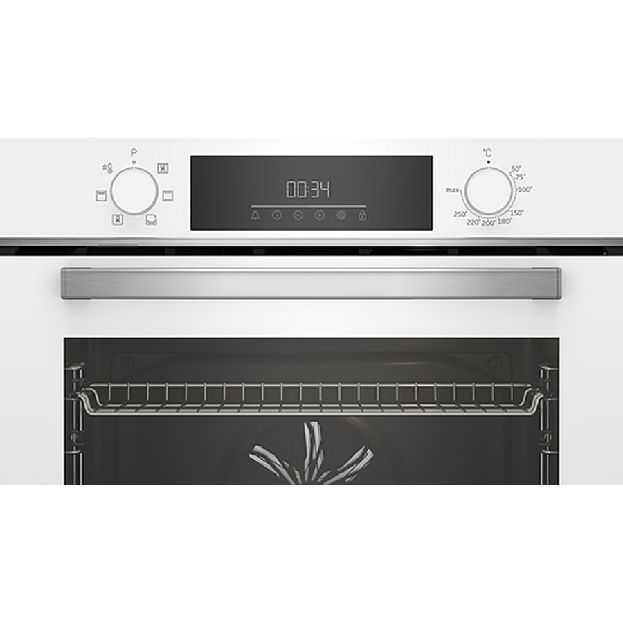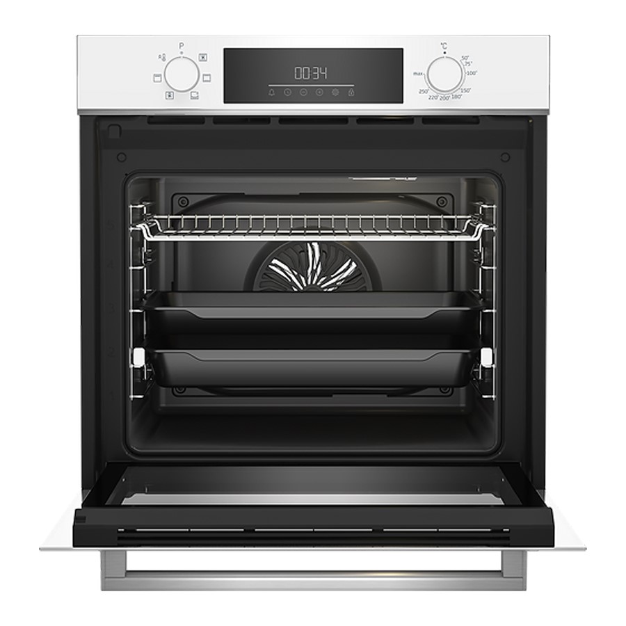 This fan-assisted oven is designed to combine modern aesthetics with efficient performance. It features a sleek stainless-steel finish, adding a contemporary touch to any kitchen. This model offers a generous oven capacity, suitable for family meals, and comes equipped with several cooking functions, including fan-assisted cooking, grilling, and defrosting, providing versatility for a range of recipes. The oven also includes easy-to-use controls, energy-efficient operation, and a clear glass door, allowing users to monitor their cooking with ease.