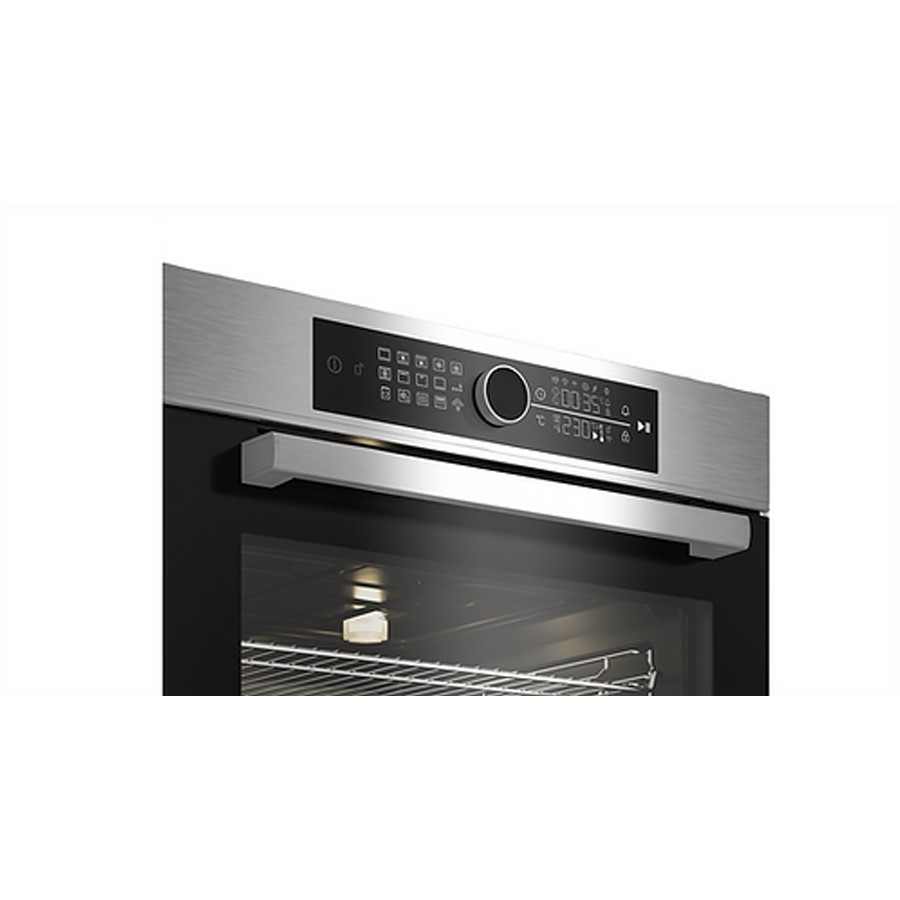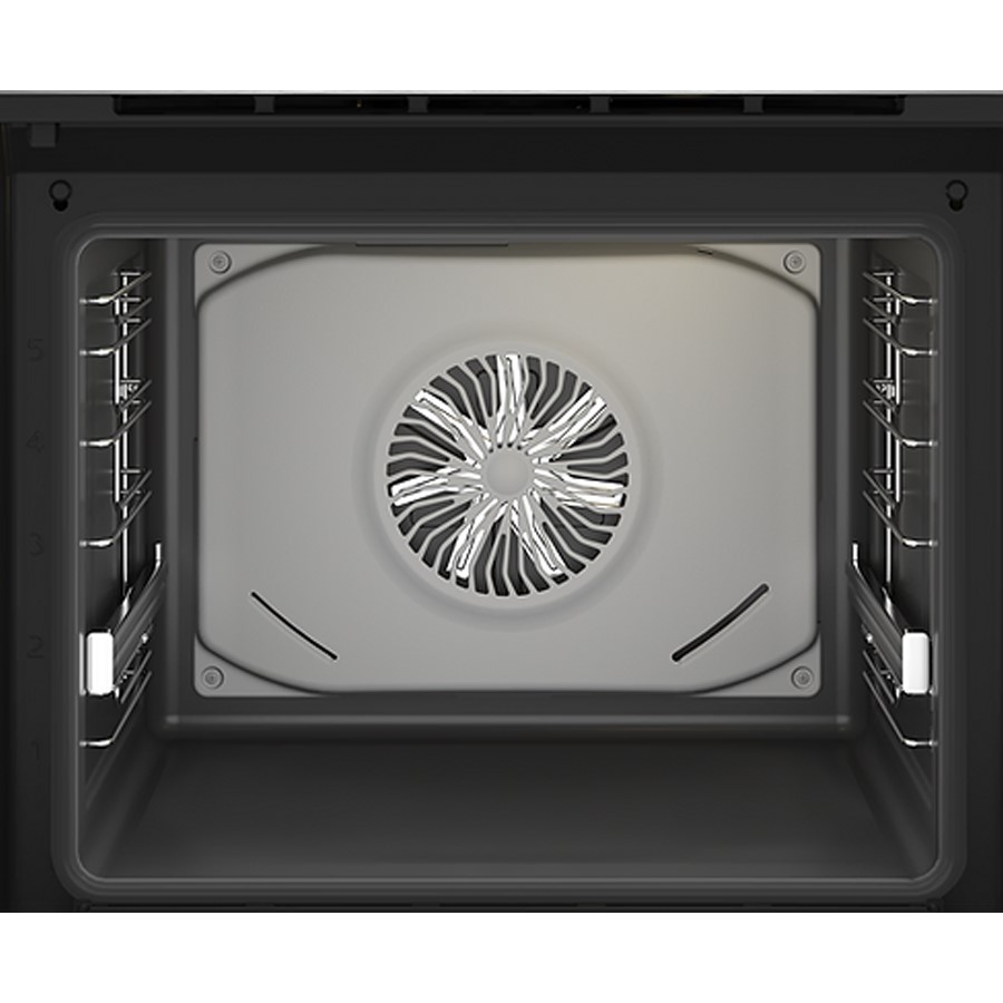 This fan-assisted oven is designed to combine modern aesthetics with efficient performance. It features a sleek stainless-steel finish, adding a contemporary touch to any kitchen. This model offers a generous oven capacity, suitable for family meals, and comes equipped with several cooking functions, including fan-assisted cooking, grilling, and defrosting, providing versatility for a range of recipes. The oven also includes easy-to-use controls, energy-efficient operation, and a clear glass door, allowing users to monitor their cooking with ease.