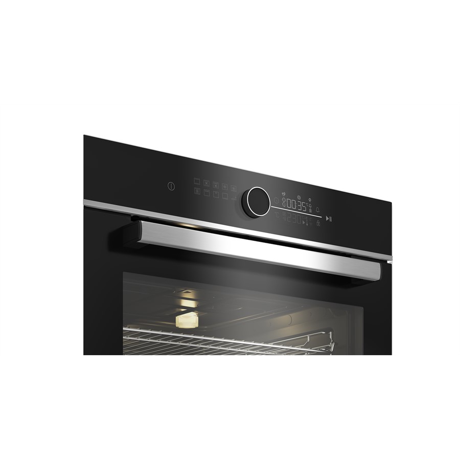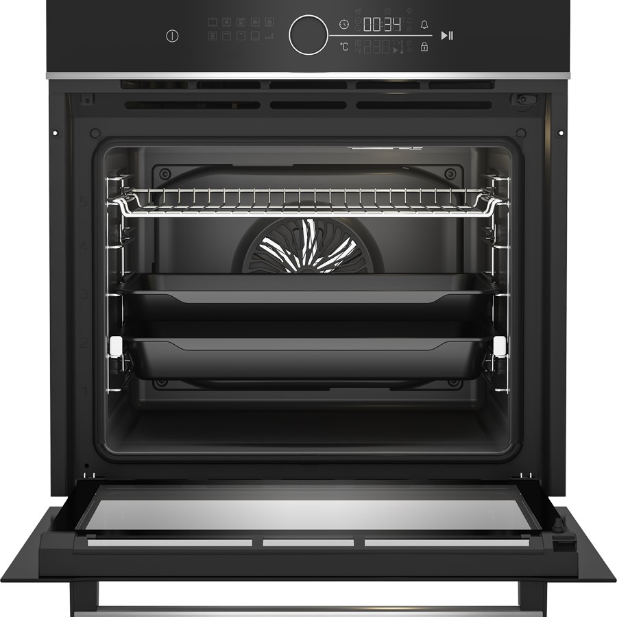 Upgrade your kitchen with the Beko BBIM13400XPSE built-in oven, designed for effortless cooking and modern convenience. Featuring AeroPerfect™ technology, it ensures even heat distribution for perfectly cooked meals every time. The spacious interior and multiple cooking functions provide versatility for any recipe, while the SteamShine cleaning function makes maintenance easy by softening dirt for a quick wipe-down. With its sleek inox finish, intuitive touch controls, and energy-efficient design, this oven is a stylish and practical addition to any contemporary kitchen .