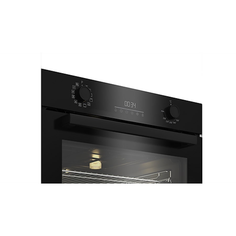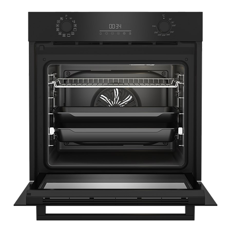 This fan-assisted oven is designed to combine modern aesthetics with efficient performance. It features a sleek stainless-steel finish, adding a contemporary touch to any kitchen. This model offers a generous oven capacity, suitable for family meals, and comes equipped with several cooking functions, including fan-assisted cooking, grilling, and defrosting, providing versatility for a range of recipes. The oven also includes easy-to-use controls, energy-efficient operation, and a clear glass door, allowing users to monitor their cooking with ease.