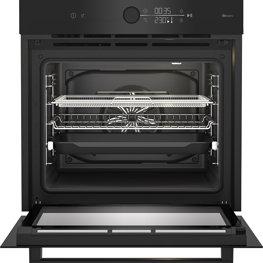 The Beko BBIMA17410BMPW is a built-in, single multifunction oven designed to offer efficient cooking with a sleek, modern look. It features an impressive 72-liter capacity, ideal for family meals, and multiple cooking functions, including fan cooking, grill, and conventional baking. With its easy-to-clean enamel interior and energy-efficient design (A+ energy rating), it provides both convenience and sustainability. The oven includes touch control, retractable dials, and a digital display, making it user-friendly, while its elegant black and stainless-steel finish fits well in any contemporary kitchen.