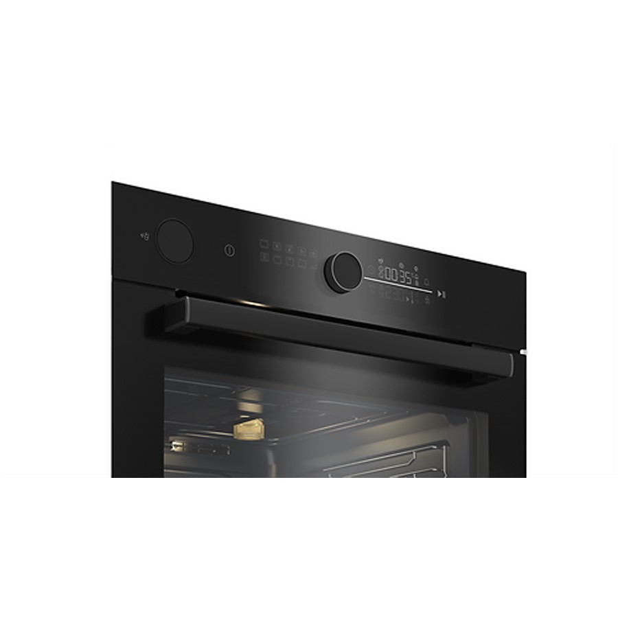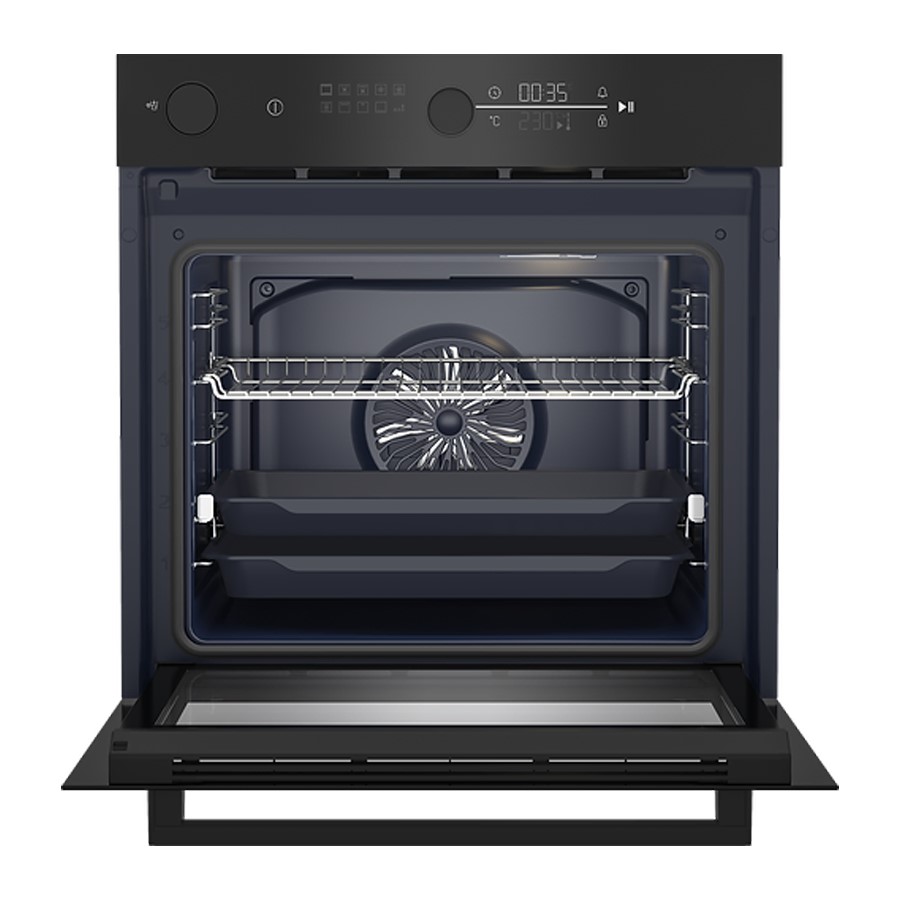 This fan-assisted oven is designed to combine modern aesthetics with efficient performance. It features a sleek stainless-steel finish, adding a contemporary touch to any kitchen. This model offers a generous oven capacity, suitable for family meals, and comes equipped with several cooking functions, including fan-assisted cooking, grilling, and defrosting, providing versatility for a range of recipes. The oven also includes easy-to-use controls, energy-efficient operation, and a clear glass door, allowing users to monitor their cooking with ease.