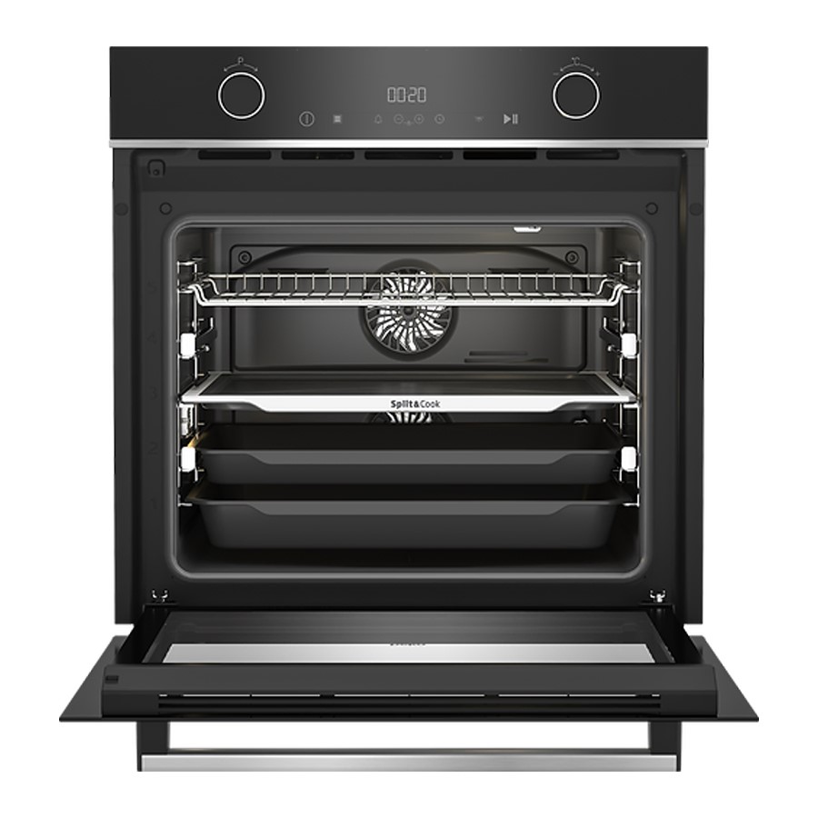 This fan-assisted oven is designed to combine modern aesthetics with efficient performance. It features a sleek stainless-steel finish, adding a contemporary touch to any kitchen. This model offers a generous oven capacity, suitable for family meals, and comes equipped with several cooking functions, including fan-assisted cooking, grilling, and defrosting, providing versatility for a range of recipes. The oven also includes easy-to-use controls, energy-efficient operation, and a clear glass door, allowing users to monitor their cooking with ease.