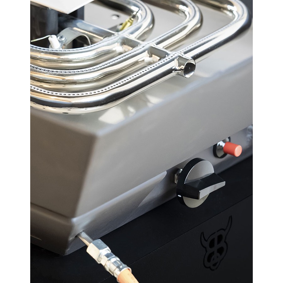 Elevate your outdoor cooking experience with the BigQube L Gas Corten, a striking fusion of form and function. Crafted from durable Corten steel, this grill boasts a spacious 95×95 cm cooking surface, perfect for hosting large gatherings.