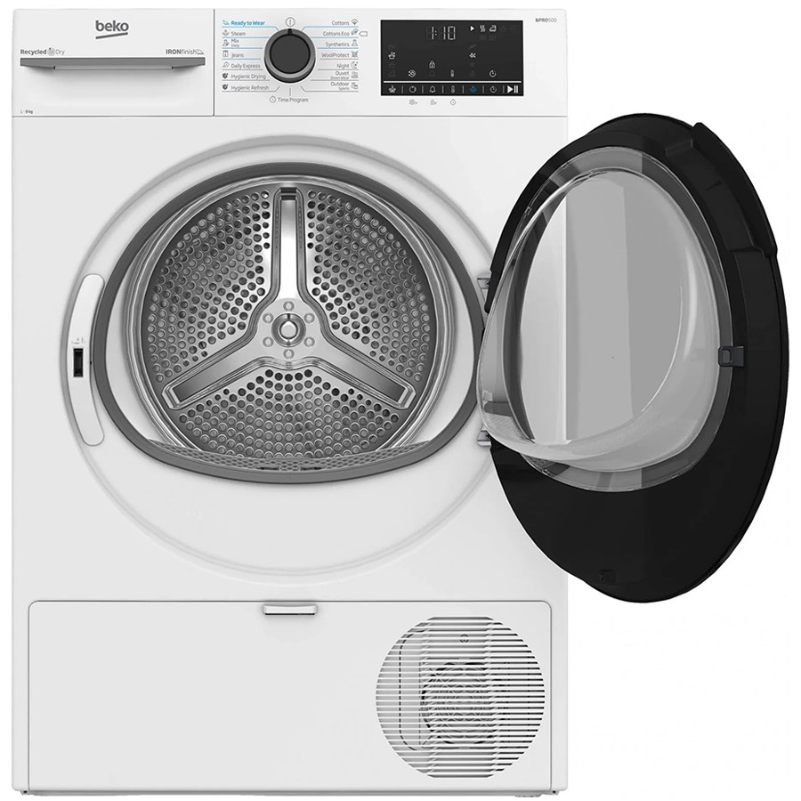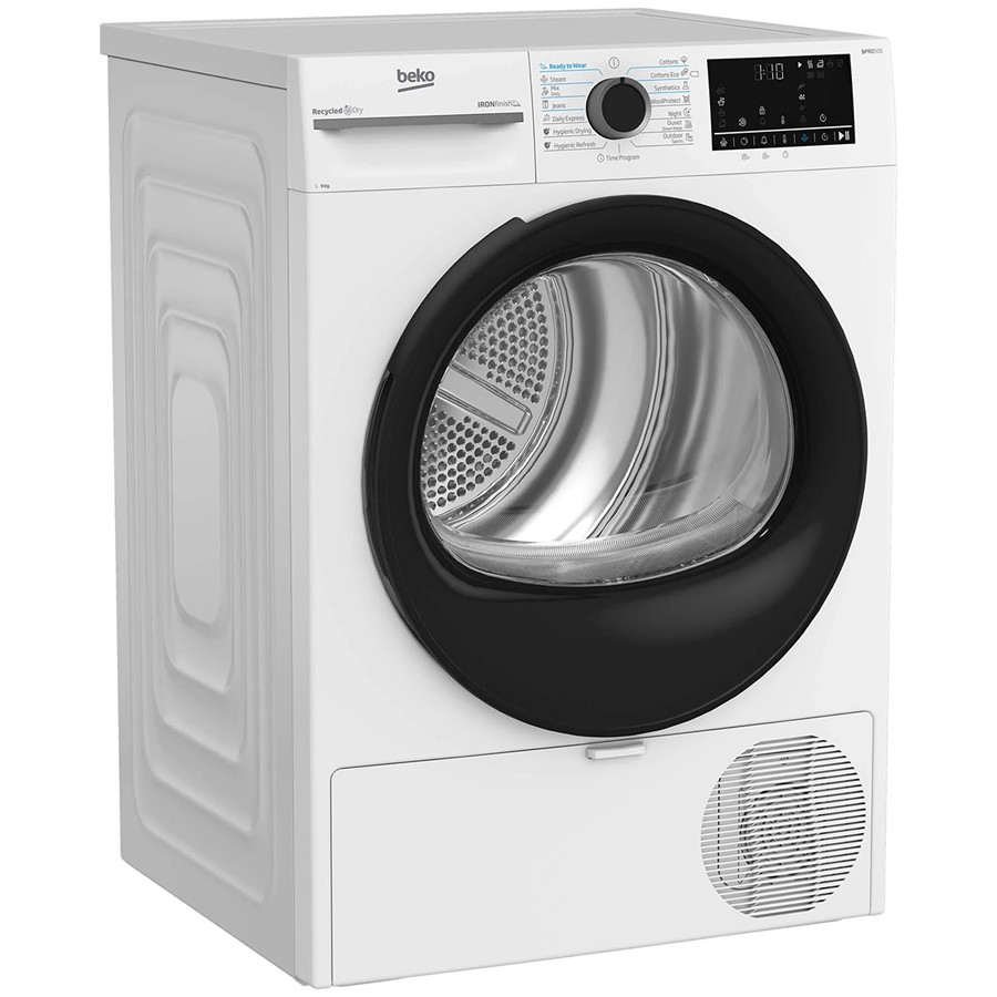 Experience superior drying performance with the Beko BM5T49243W heat pump tumble dryer, offering a generous 9 kg capacity ideal for large households. With 15 specialized programs, including settings for jeans, wool, and outdoor wear, it caters to diverse fabric needs. The AquaWave® system's wave-like drum action treats clothes with care, minimizing wear and tear. Additional features such as the Auto Anti-Crease function reduce ironing time by minimizing wrinkles, and the child lock ensures safety in households with young children.