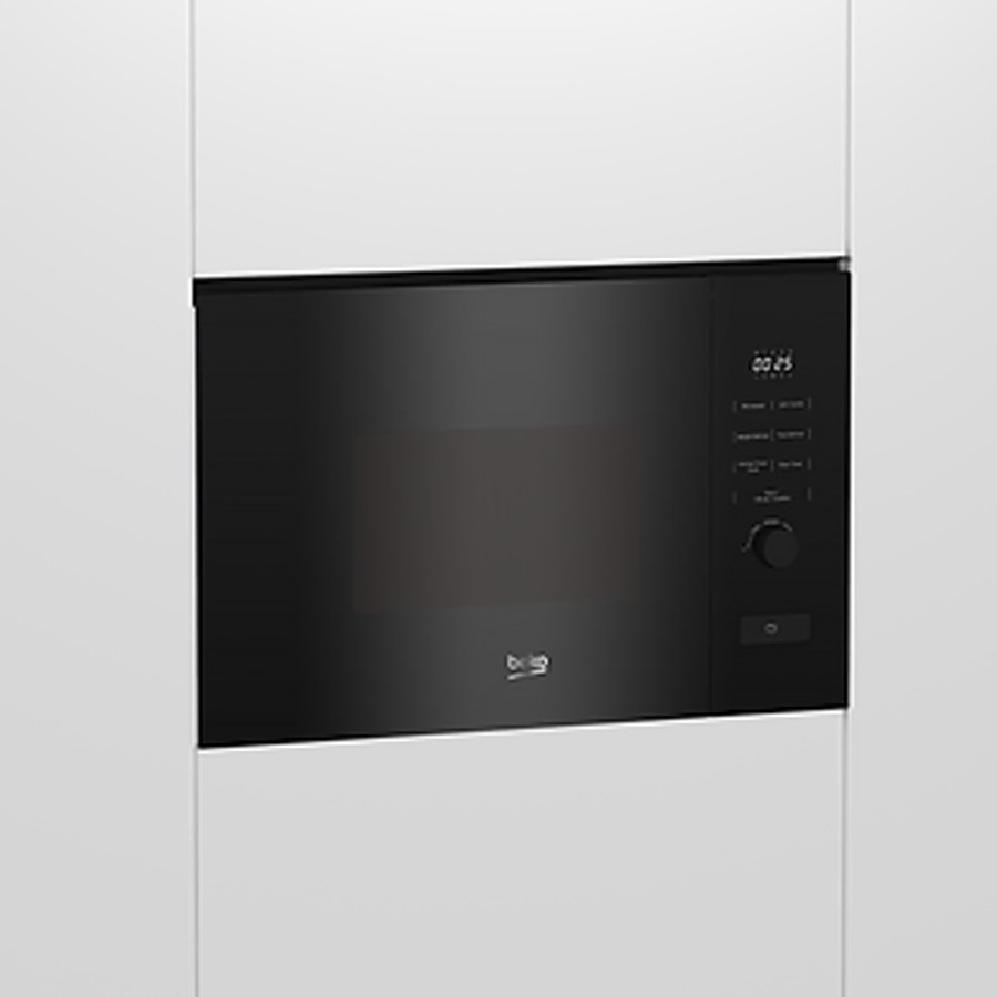 The Beko built-in microwave oven is a sleek appliance designed to complement modern kitchens. With a 20-liter capacity, it is perfect for cooking and reheating meals efficiently. The black finish offers a stylish and contemporary look, enhancing your kitchen's aesthetics. This microwave features intuitive controls and advanced cooking functions, making it a versatile addition to your culinary arsenal. The Beko built-in microwave combines compact design with high performance, providing convenience and reliability for everyday use while seamlessly fitting into your kitchen space.